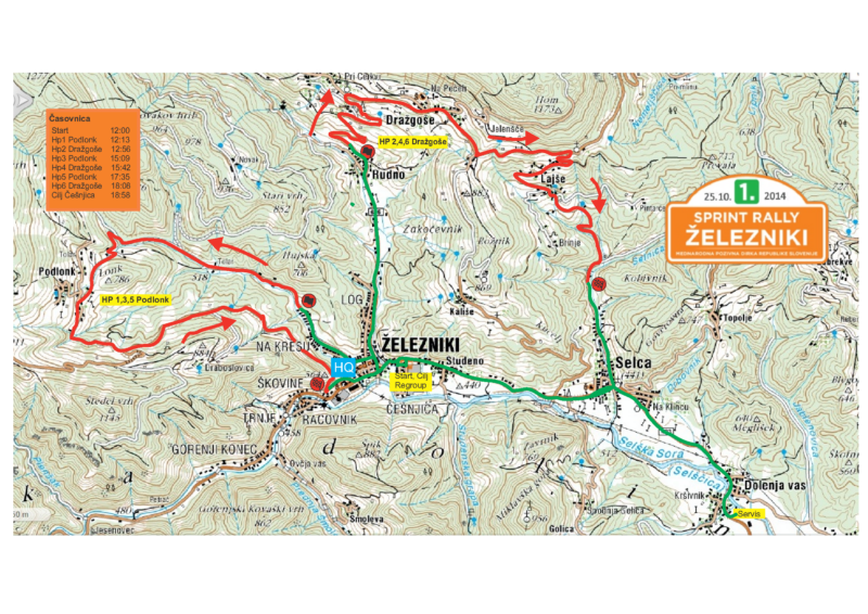 - first centre is in Železniki, where is a Headquarter of rally, Start, Finish and regrouping